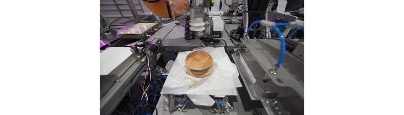 20秒(miǎo)就可(kě)以(yi)製(zhi)作(zuò)一(yi)箇(ge)新(xin)鲜热乎的(de)汉堡包的(de)智能(néng)汉堡機(jī)。